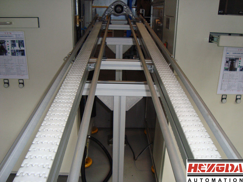 柔性鏈板輸送系統特點:是一種情形組合立體輸送系統,采用鋁合金框架,塑鋼輸送鏈。具有靈巧、輕便、美觀,