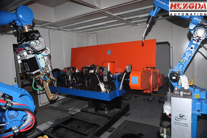 1)每個焊點的焊接周期可大幅度降低,因為焊鉗的張開程度是由機器人精確控制的,機器人在點與點之間的移動過程、焊鉗就可以開始閉合;而焊完一點后,焊鉗一邊張開,機器人就可以一邊位移,不必等機器人到位后焊鉗才閉會或焊鉗完全張開后機器人再移動;